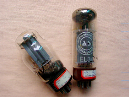 三颗小功率功率放大管:6P1,6P6P,EL84